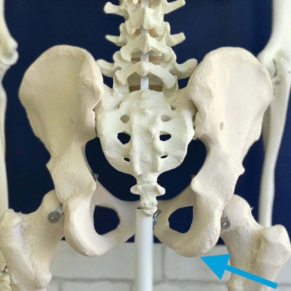 心当たりがある方は、鼠蹊部の真ん中を手前に引き込み、矢印で示した両方の坐骨で、均等に地面を捉える意識を持ちましょう。